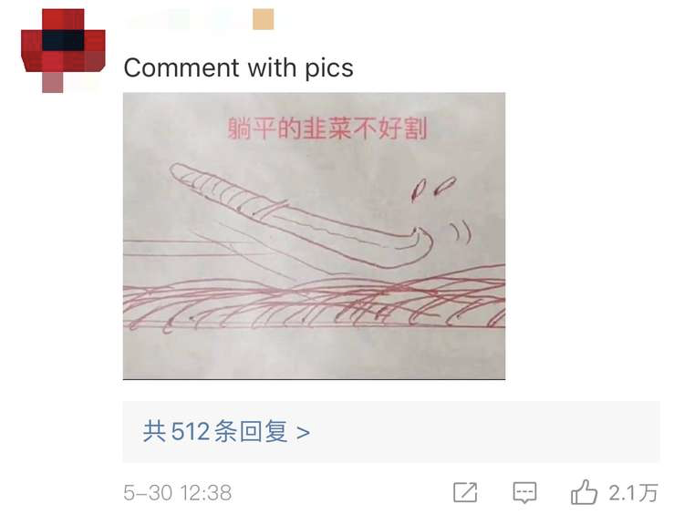 有网友在评论中用图片调侃俞敏洪:躺平的韭菜不好割啊。