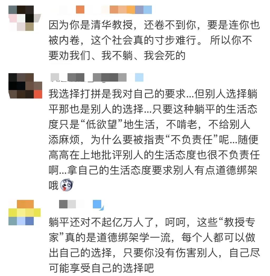 清华大学教育研究院长聘副教授李锋亮也指出,内卷是教育的筛选功能,“躺平”是极不负责任的态度,不但对不起自己的父母,还对不起亿万个努力工作的纳税人。