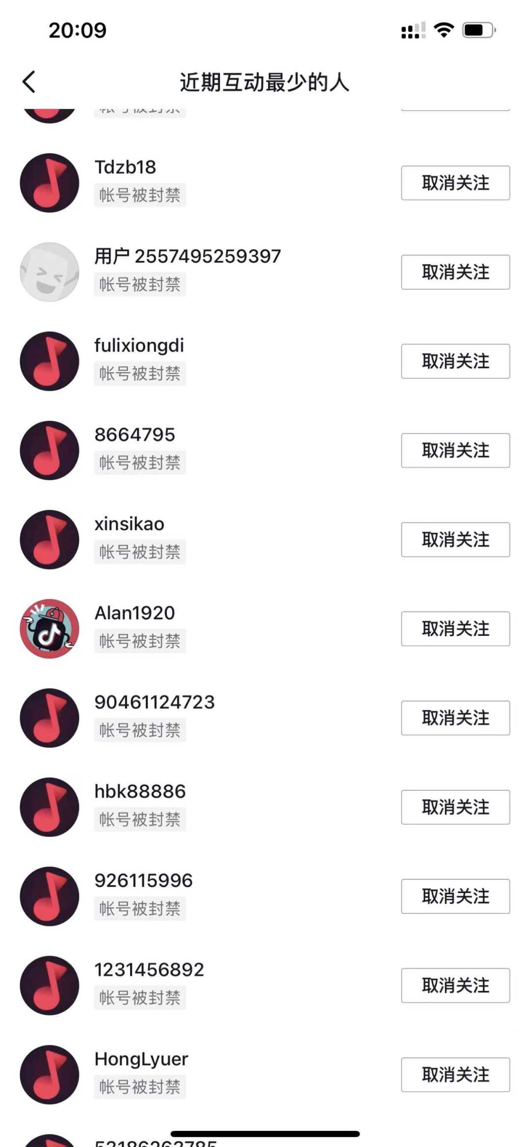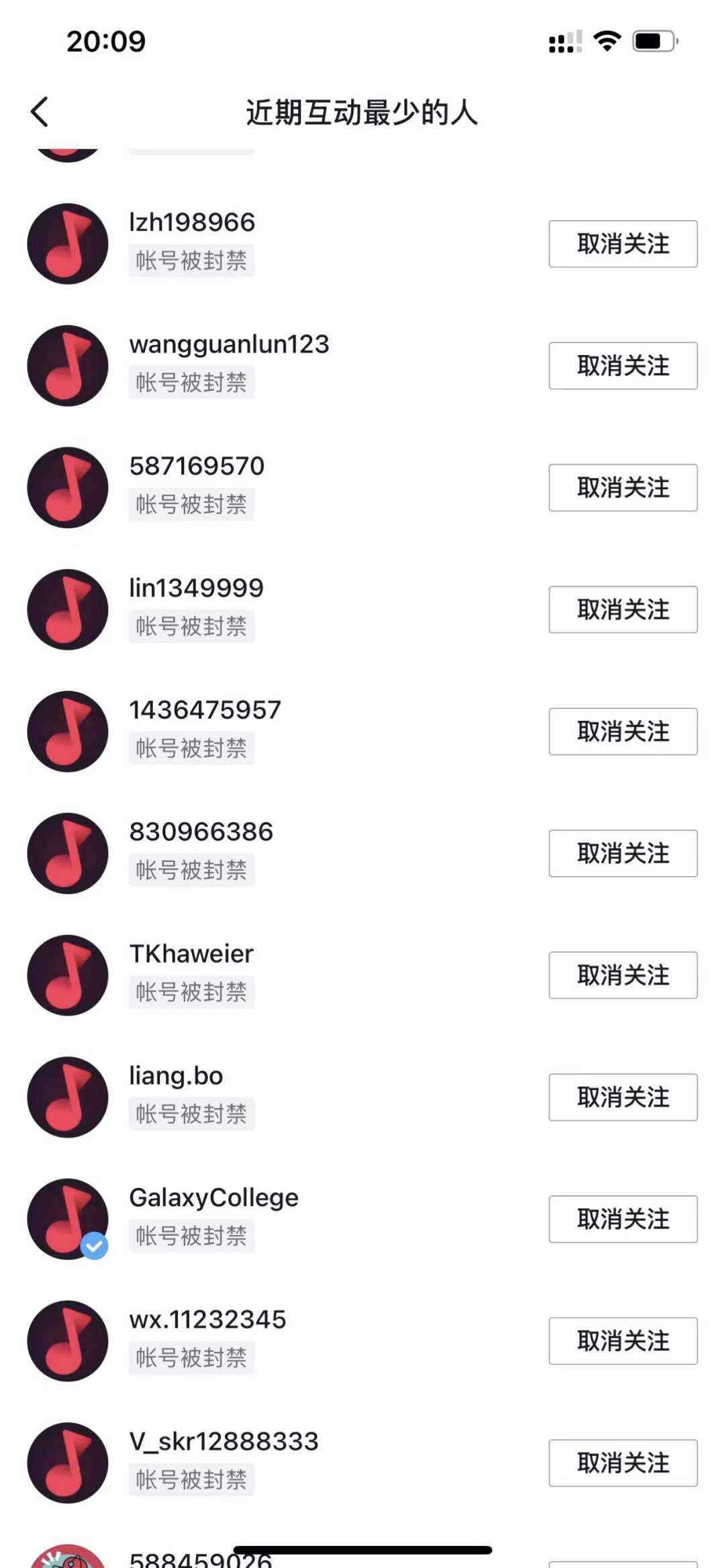 结果,大无语,发现一大堆的抖音号被悉数删除。